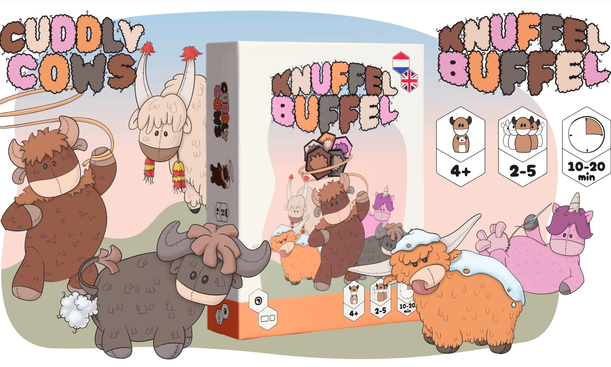 De vijf knuffels in Knuffel Buffel zijn allemaal wollige unieke karakters met hun eigen persoonlijke verhaal. Maak kennis met Betsy Bizon, Yasmin Jak, Hattie Hooglander, Benny Buffel en Elanor Eenhoorn!